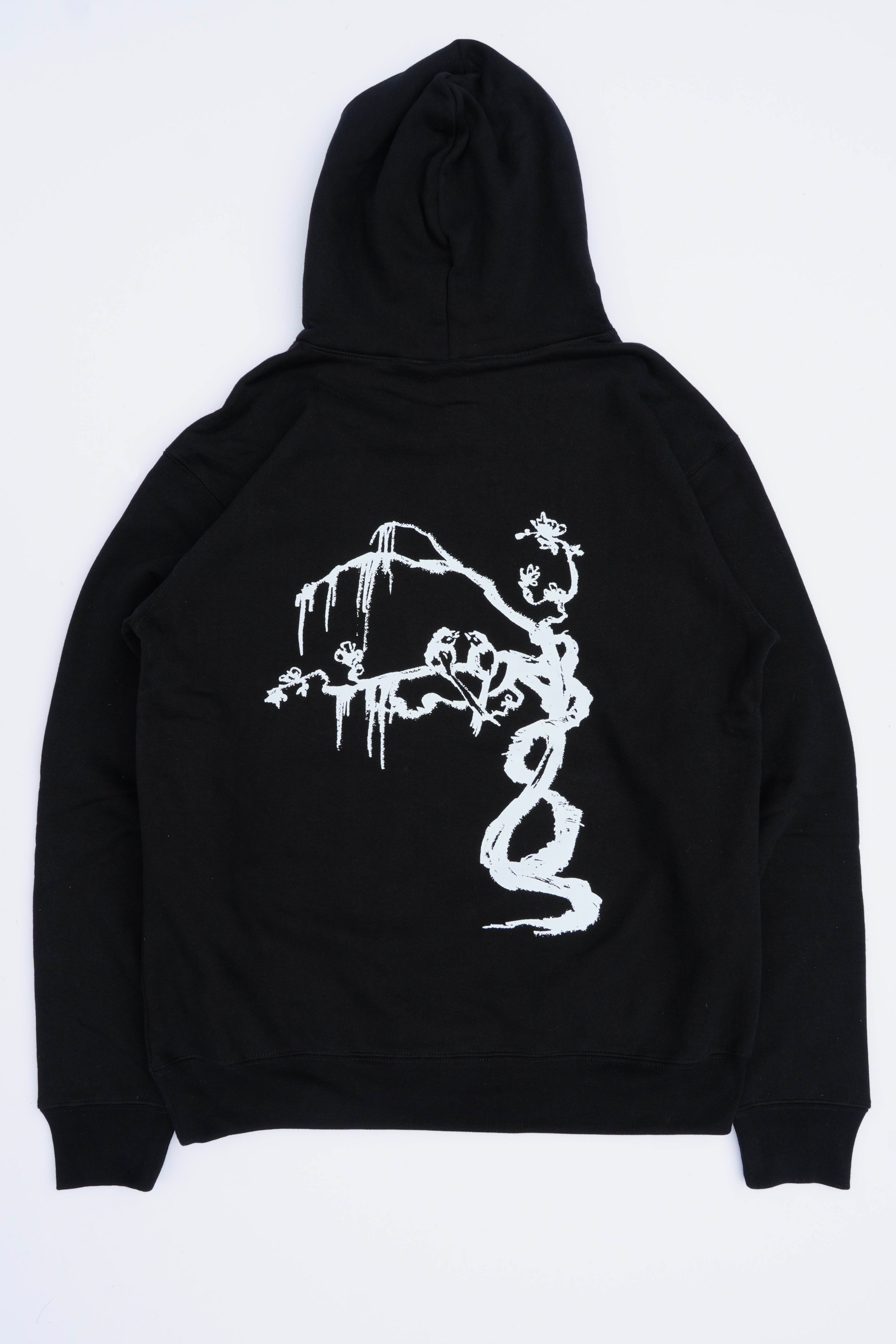 This hoodie features a peach tree and willow tree intertwined, with swallows perched on the branches — a design inspired by Chinese symbolism for love, protection, and longevity. Crafted from 14 oz heavyweight 100% cotton terry, this preshrunk fabric ensures durability and minimal shrinkage after washing. The heat pressed finish enhances its strength and maintains a consistent texture.